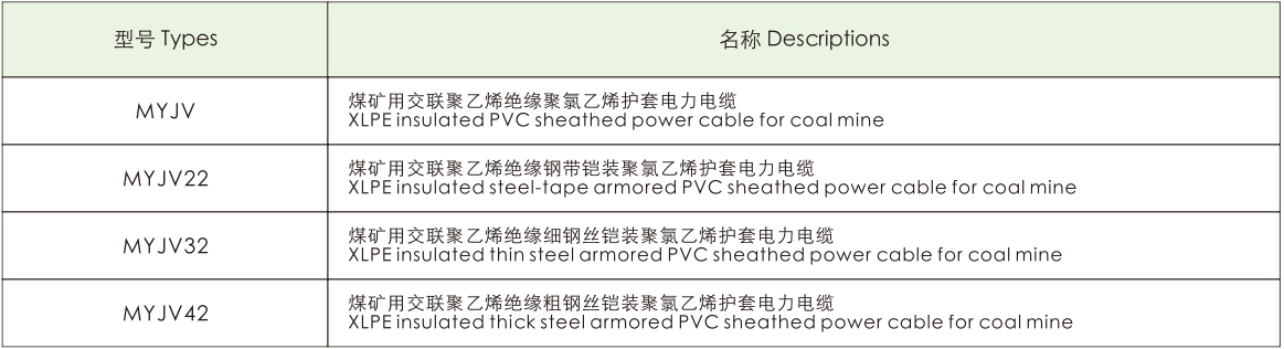 適用于交流額定電壓10KV及以下,煤礦電力設(shè)備傳輸電能用。
